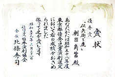 | 1968年 |   「泣いた赤おに」 劇団創立5年目に東京都教育委員会主催による優秀児童演劇選定にて優秀賞を頂きました。 |